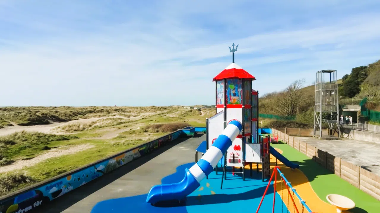 Aberdyfi Town Council wanted to refresh the existing playground while preserving its unique character. The original black and white lighthouse tower was a much-loved feature within the local community, but it offered limited play opportunities. The key objective was to create a new attraction that would build on this recognisable symbol, while providing more play value and being accessible to a wider range of users.
