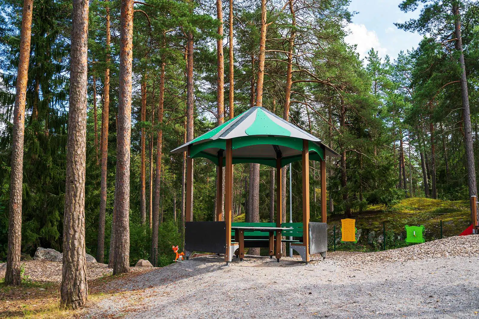 Leikkiset delivered a forest-themed playground full of delightful details that invite independent play, exploration, and discovery. In addition to traditional play structures, the space features educational panels placed at just the right height for little ones – helping them learn about numbers, time, and animal tracks. The well-thought-out design encourages both movement and mental engagement.