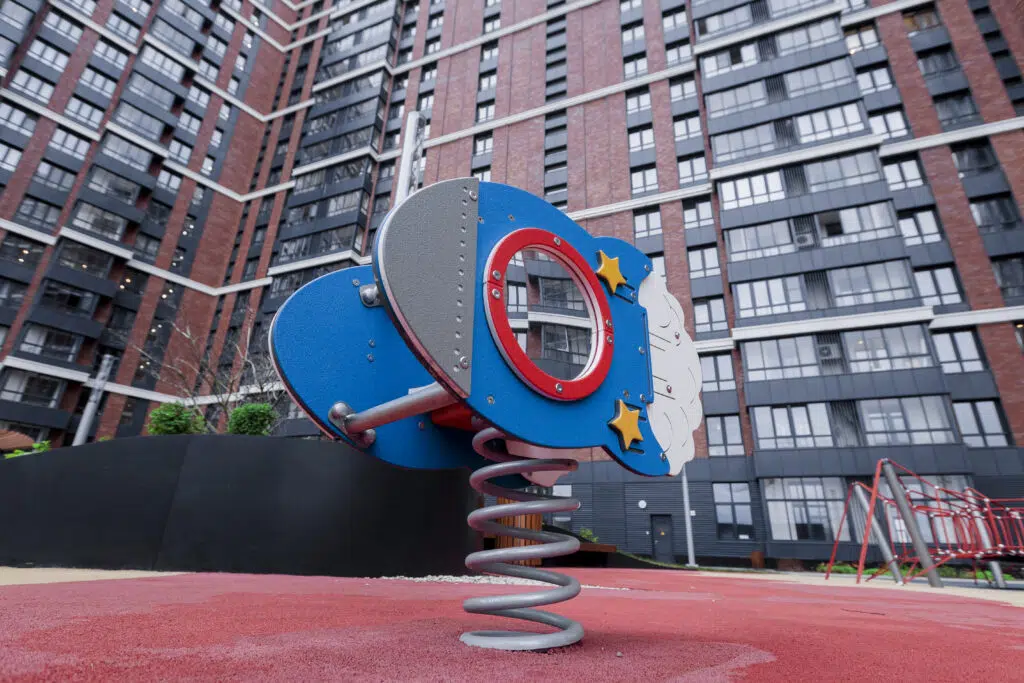 Wieże w kształcie rakiet, bujaki przypominające UFO i zestawy zabawowe z planetami czy tablicami edukacyjnymi – wszystko po to, by pobudzić dziecięcą wyobraźnię i dać przestrzeń do ruchu bez ograniczeń grawitacji.